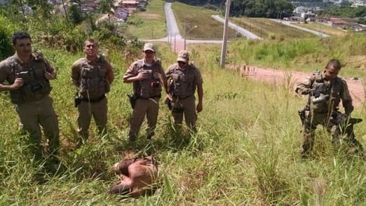 O cão Eros, que pertence ao Canil Setorial do 14º Batalhão de Polícia Militar e o cabo Cattoni foram chamados.