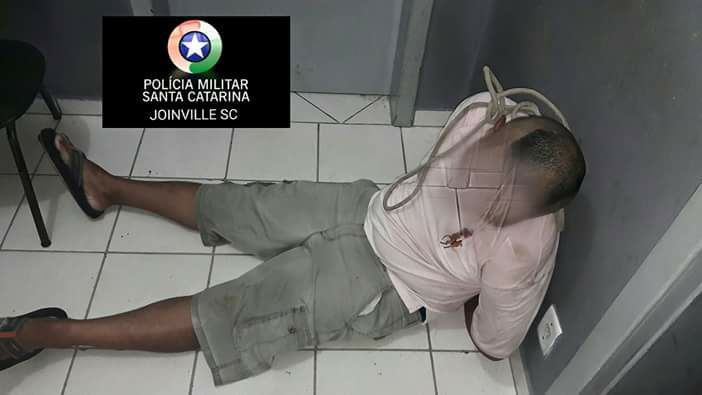No local foi identificado um homem, com as iniciais F.L. de 34 anos , que se encontrava detido e imobilizado com cordas por familiares.