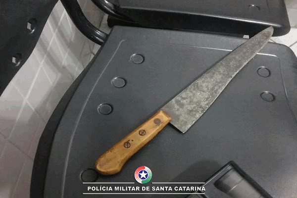 | A PM localizou o agressor de posse de uma faca. Imagem: PM Canoinhas/Divulgação |