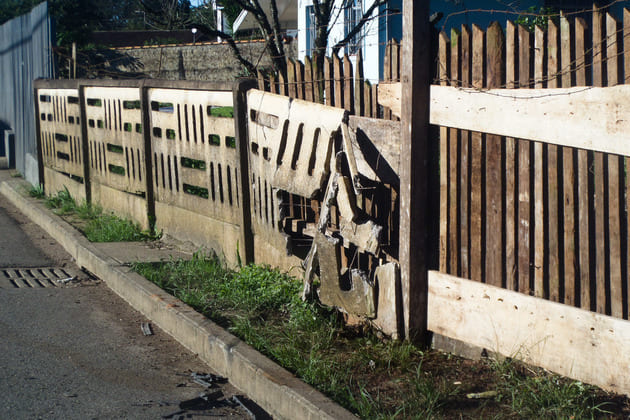 | Muro onde o táxi bateu já foi parcialmente consertado pelo morador (Imagem: Canoinhas Online) |