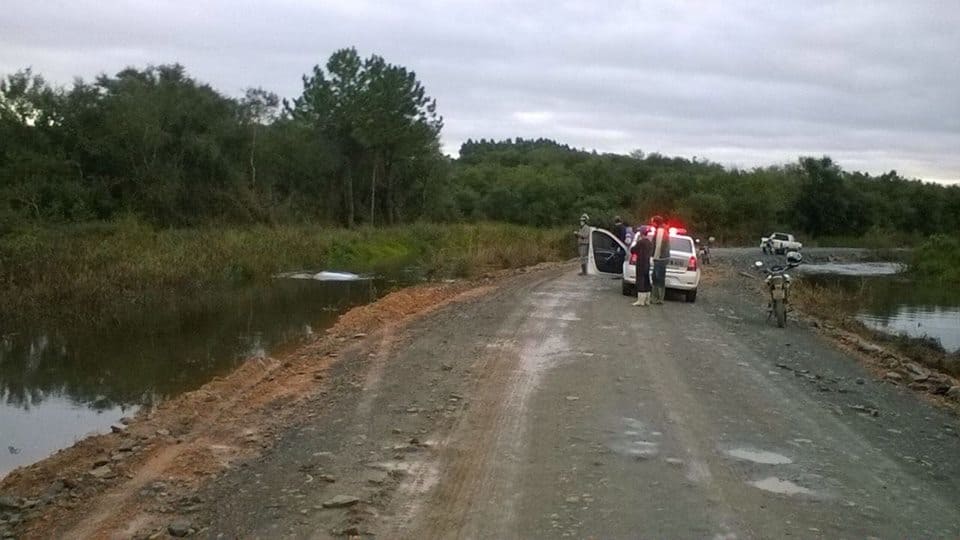 Populares encontraram um veículo Corsa, com placas de Itaiópolis, quase submerso, em um alagado do rio Canoinhas na localidade de Olaria, interior de Monte Castelo.