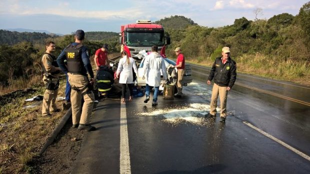 Conforme informações da Polícia Rodoviária Federal, chovia forte no momento do acidente.