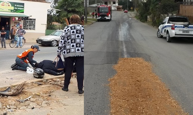 O motociclista recebeu o primeiro atendimento pelo médico Dr. M.O. e pelo Bombeiro Comunitário Willian.