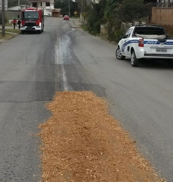 onde depararam-se com um vazamento de óleo diesel na referida rua.