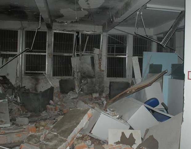 | Agência do Banco do Brasil de Irineópolis foi parcialmente destruída em assalto no dia 25/03/2017. Arquivo |