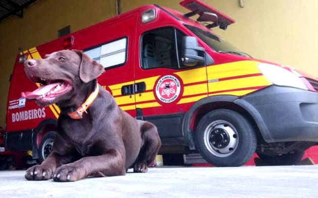 Com a chegada do Tenente BM Michels, veio também um cachorro treinado para resgate.