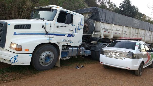 | A PM encontrou o caminhã a cerca de 100 metros da casa. O jovem abandonou o veículo e embrenhou-se na mata. Imagem: PMSC |