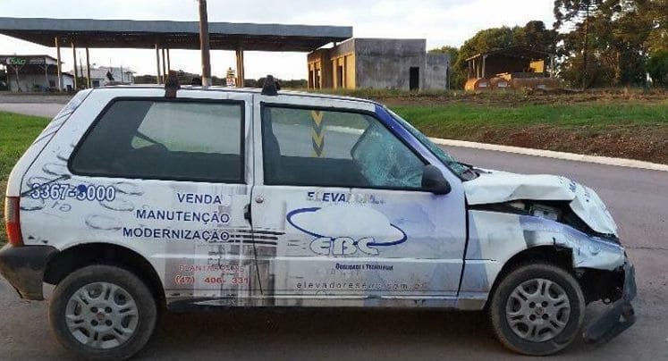 A colisão envolveu um veículo Fiat Uno, com placas de Balneário Camboriú e uma motocicleta com placa de Papanduva.