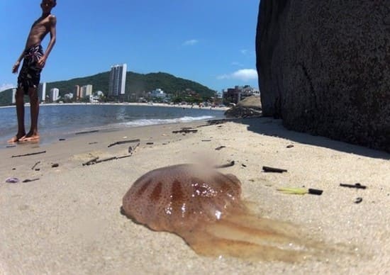 Não encoste na água-viva mesmo se ela estiver na areia da praia e parecer morta. Mesmo parada na areia, ela pode liberar a toxina.