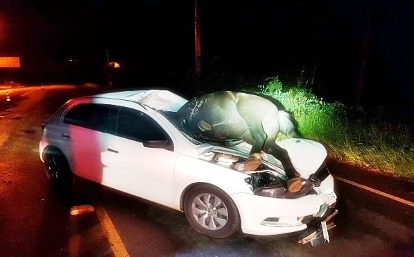 Com o impacto, o cavalo quebrou o parabrisa e ficou com boa parte do corpo dentro do veículo, morrendo na hora.