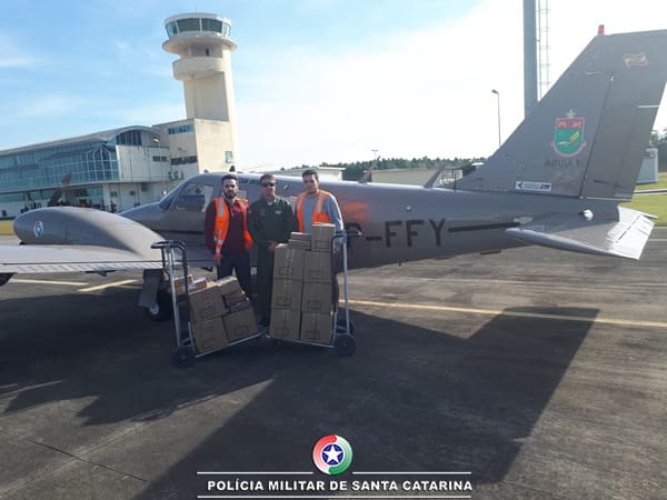 Nesta sexta-feira (01), o Batalhão de Aviação da Polícia Militar de Santa Catarina (BAPM), através da aeronave Águia 05, realizou o transporte de aproximadamente 50 kg de diversos tipos de medicamentos, com destino final no Hospital São Vicente de Paulo, no município de Mafra.