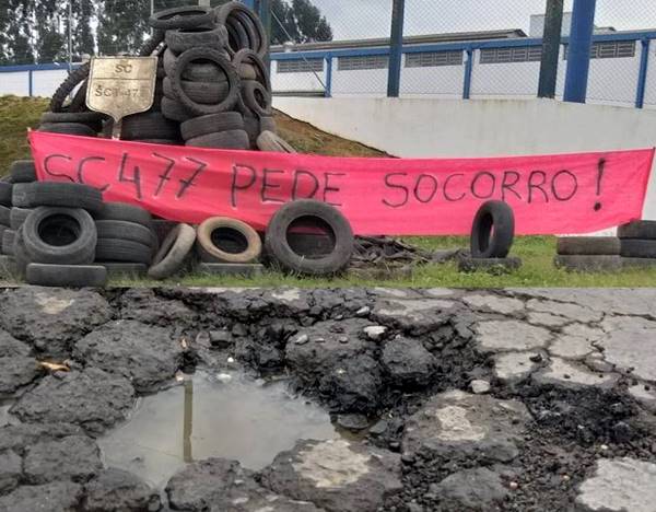 “Queremos a revitalização da SC- 477. Chega de descaso“, diz a organização do protesto.
