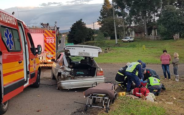 Uma colisão envolvendo um Chevrolet Onix e um Ford Escort por volta das 17h00 desta sexta-feira (24), foi registrado pelos Bombeiros de Canoinhas na BR-280, na localidade da Encruzilhada.