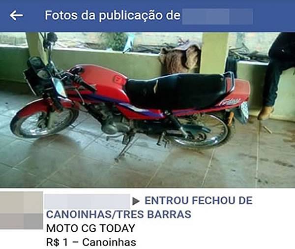 | Motocicleta oferecida através de grupo no Facebook, tinha registro de furto/PM/Divulgação |