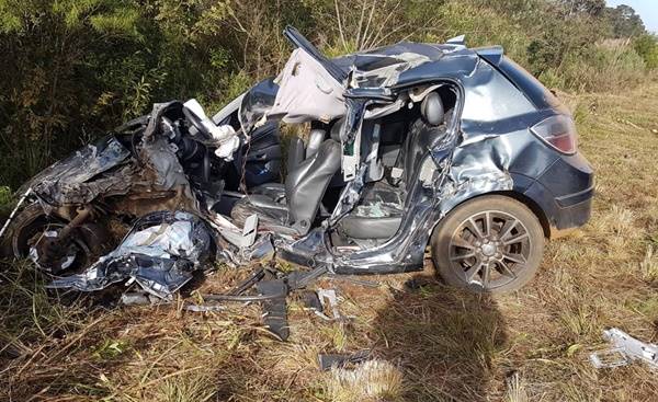 | Mulher sobrevive após carro ficar destruído em batida com carreta. Foto: PRF/Divulgação |