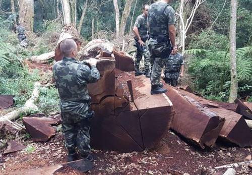 | Imbuia gigante, árvore símbolo de Santa Catarina, com idade estimada em mais de 500 anos, foi derrubada para virar cerca. Foto: Polícia Militar Ambiental de SC |