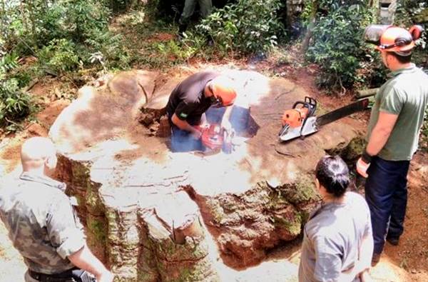 —Nunca tinha visto uma árvore assim, desse tamanho, cortada desse jeito. É bem triste porque, além de ser uma espécie ameaçada de extinção, é centenária e rara —afirmou.