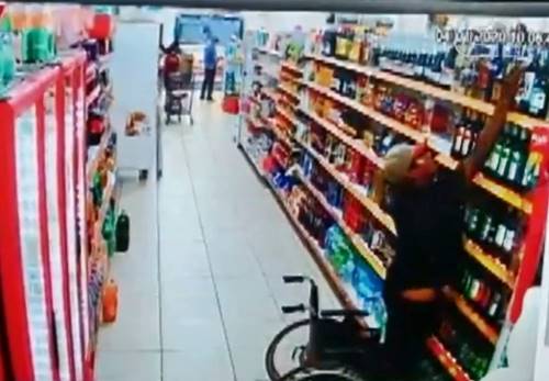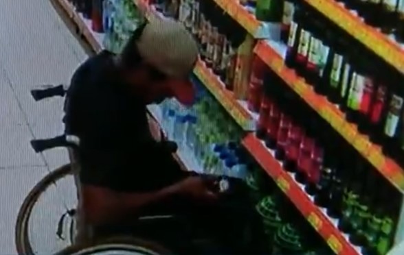 Um homem foi filmado levantando da cadeira de rodas e furtando um whisky escocês em um supermercado, em Foz do Iguaçu, no oeste do Paraná, segundo a gerência do estabelecimento.