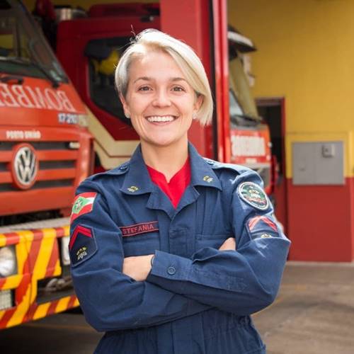 | Stefania é Cabo Bombeira Militar e atua no 9º Batalhão de Bombeiros Militar em Canoinhas. |