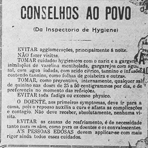 Conselhos dados na época não diferem muito dos atuais: isolamento e higiene. Foto: web |