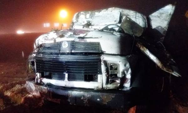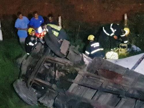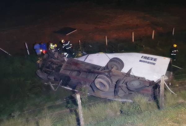 De acordo com os Bombeiros, o caminhão, um Mercedes Benz/L com placas de Rio Negro (PR), saiu da pista em uma curva e caiu em ribanceira (banhado).