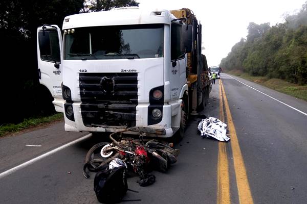 Uma colisão envolvendo uma moto Yamaha Fazer, placa de Mafra, e um caminhãoVW 24 250, placas de São Bento do Sul, registrou uma vítima fatal na manhã desta terça (19), na BR-280 em Mafra.