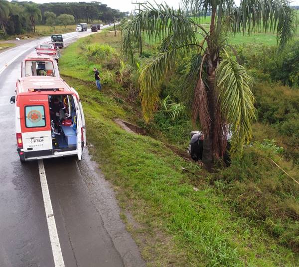 De acordo com os Bombeiros, após receberem atendimento e avaliação, o condutor do veículo e uma mulher que viajava no banco do carona, foram imobilizados e conduzidos para o Hospital São Braz de Porto União. Os Bombeiros não informaram a placa do veículo.