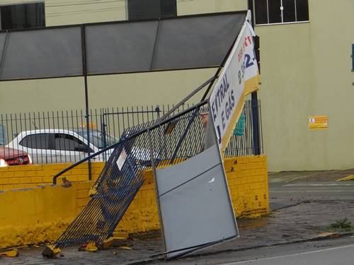 | Placa arrancada pelo vento em Canoinhas. Foto: Canoinhas Online |