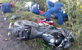 Com o impacto, o motociclista foi lançado para às margens da rodovia, sendo encontrado caído em um barranco, apresentando suspeita de fratura na perna esquerda e luxação de tornozelo.