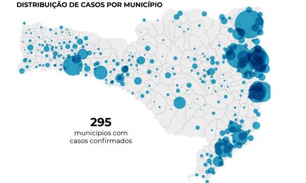 São 295 as cidades catarinenses com pelo menos um caso confirmado e 188 as que já registraram óbitos.