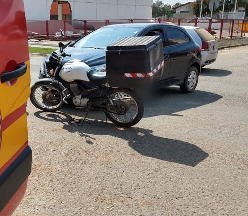 Um motociclista de 24 anos ficou ferido no início da tarde desta quinta-feira (3), em acidente registrado por volta das 13h25, na Av. Rubens Ribeiro da Silva, no Campo da Água Verde.