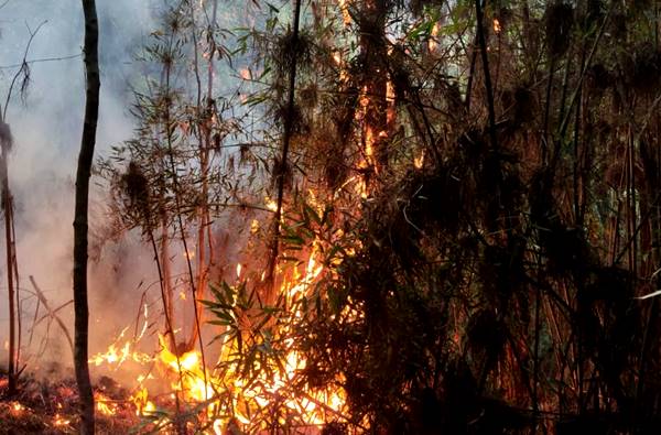 O local atingido era uma área de reflorestamento de Pinus, e uma extensa área já foi encontrada queimada com o incêndio rasteiro se estendendo em meio as folhas secas dos Pinus.