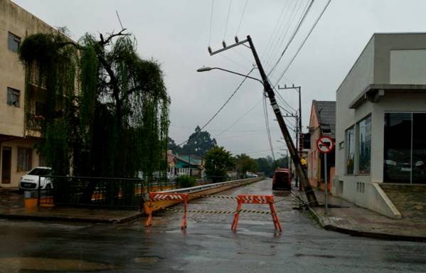 Na tarde desta sexta-feira (9), policiais militares, agentes de trânsito e funcionários da Celesc estão atendendo uma ocorrência na área central de Canoinhas, onde um caminhão enroscou na fiação (cabos da rede de telefone, internet e luz), na Rua Eugênio de Souza.