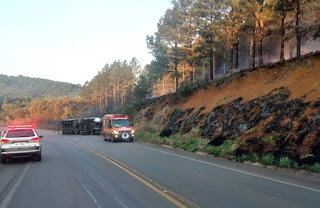 Outra guarnição permaneceu no local, pois próximo ao acidente ocorria um incêndio em vegetação, onde foi feito uma linha para proteger o caminhão das chamas, e posteriormente o combate ao incêndio com apoio da Brigada da empresa Aliança.