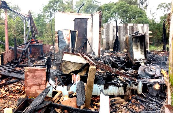 Um incêndio na manhã deste domingo (4), iniciado por chama de fogão a gás, destruiu totalmente uma residência na localidade de Santo Antonio dos Wosgraus, interior de Canoinhas.