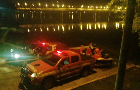 Foi colocado a moto aquática e uma embarcação no rio, e dado início às buscas do suposto suicida.
