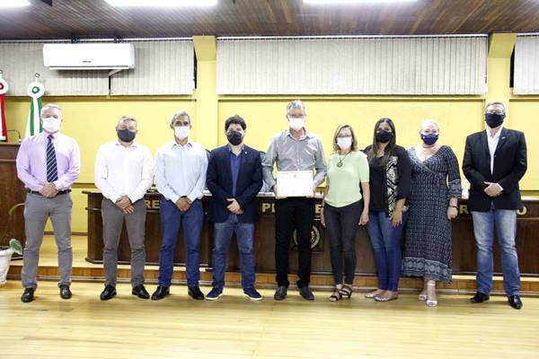 Na sessão de terça-feira (17), o presidente da Câmara de Dirigentes Lojista (CDL) de Canoinhas, Cirineu Novack, participou da sessão e recebeu dos vereadores uma Moção de Parabenização, em razão dos 40 anos de fundação da entidade no município.