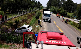 Havia um veículo VW Gol fora da pista, na ribanceira e contra um barranco. O condutor do Gol, placas Bela Vista do Toldo, um homem de 48 anos, nada sofreu.