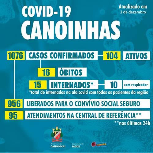 Este é o 17º óbito por Covid-19 em Canoinhas que também registra 956 pessoas recuperadas da doença.
