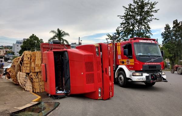Os Bombeiros foram acionados por volta das 16h30 e no local encontraram um caminhão Mercedes Benz, placas de Canoinhas, tombado ao lado da via. Segundo informações, o acidente ocorreu quando o veículo iniciava uma curva.