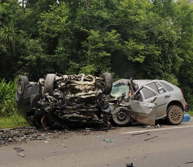 Atualização: Até às 16h20 informamos que a condutora do veículo Gol, de Canoinhas, tinha 72 anos. Essa informação, que foi repassada pelo Corpo de Bombeiros, não está correta. A vítima tinha 42 anos e era mãe das três crianças, que também morreram no local.
