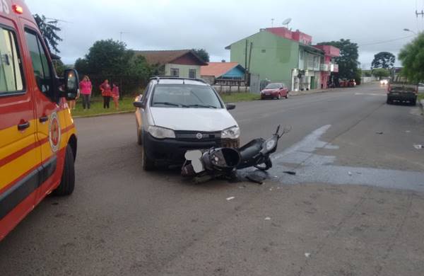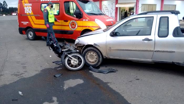 A vítima relatou que trafegava com sua motocicleta Honda Biz, placa de Canoinhas, quando colidiu com o automóvel Fiat Strada, de Bela Vista do Toldo, conduzido por um homem de 57 anos, que nada sofreu.