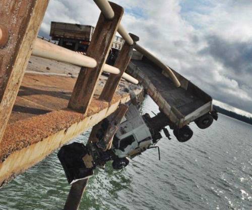 O motorista, que tinha 33 anos, foi retirado da cabine por pessoas que passavam pela ponte. Elas jogaram uma corda para puxá-lo.