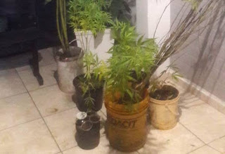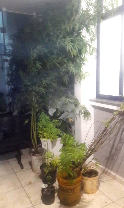 Ao realizar uma averiguação minuciosa a suspeita se confirmou. Os policiais militares aguardaram a chegada do proprietário da residência, qual autorizou a entrada das guarnições no interior do pátio, onde além da árvore que chamou a atenção foram encontradas outras quatro mudas de Cannabis Sativa plantadas e vários vasos com as sementes semeadas.