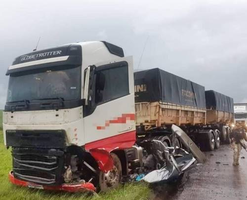 Um caminhão Volvo FH 500, que seguia de Guarapuava para Cascavel, não conseguiu desviar e acabou sendo atingido na lateral.