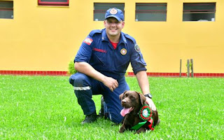 | Soldado David Canever e cadela Léia, de Porto União, pertencente ao 9º Batalhão de Bombeiros Militar, com sede em Canoinhas. Foto: CBMSC |