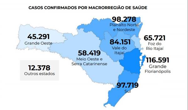 Santa Catarina chegou a 578.550 casos confirmados de Covid-19, com 6.363 mortes. Durante o fim de semana, 65 óbitos foram registrados no estado. Os números foram divulgados em boletim do governo do estado no início da noite desta segunda-feira (1º).