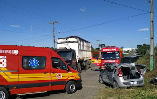 O Fiat colidiu lateralmente com um caminhão Scania, com placa de Canoinhas, cujo condutor, de 54 anos, sem lesões aparentes, recusou atendimento mediante assinatura no termo.