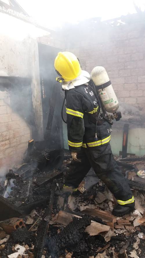 Para o controle e extinção do incêndio foi utilizado linhas de ataque direto, acessando também o interior da residência, com equipamento de proteção individual e respiratória.