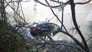 O veículo foi ancorado em uma árvore, até a chegada do guincho para retirada do mesmo.